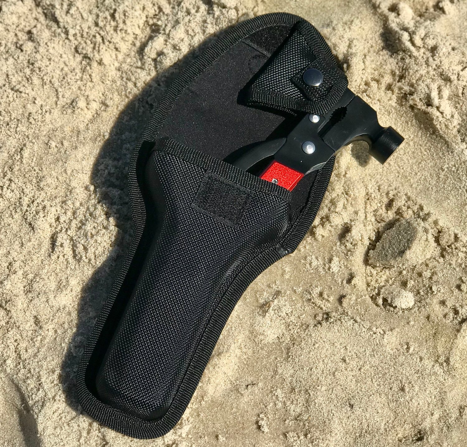 This heavy duty and easy to handle multi-tool features an ergonomic design and secure locking system. It is strong enough to break car glass, cut, saw, pry, and more. It is great for emergency situations, compact in size, and easy to carry using its reinforced nylon sheath. Weighs 15 oz. and measures 6.9" x 3.5" x 0.9".