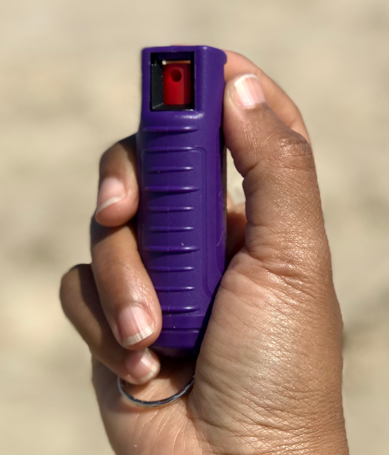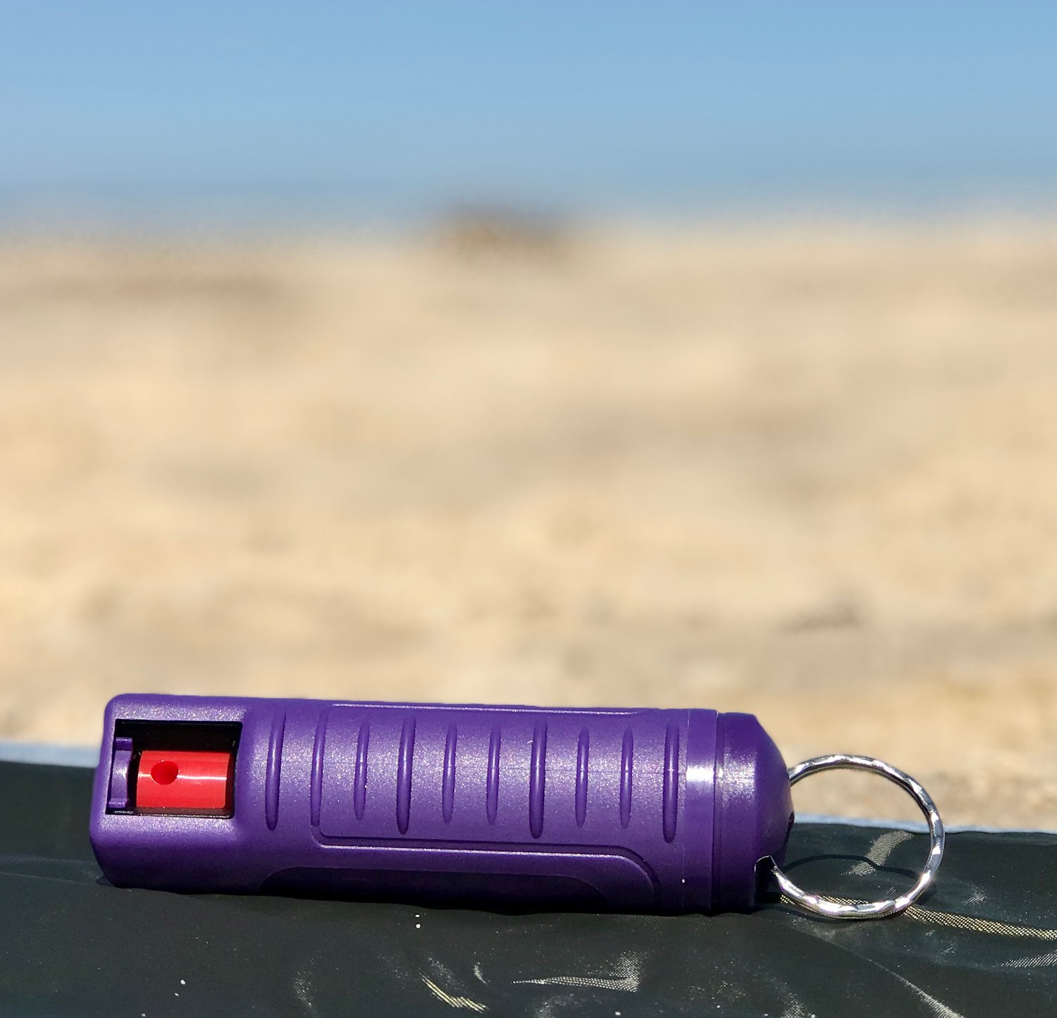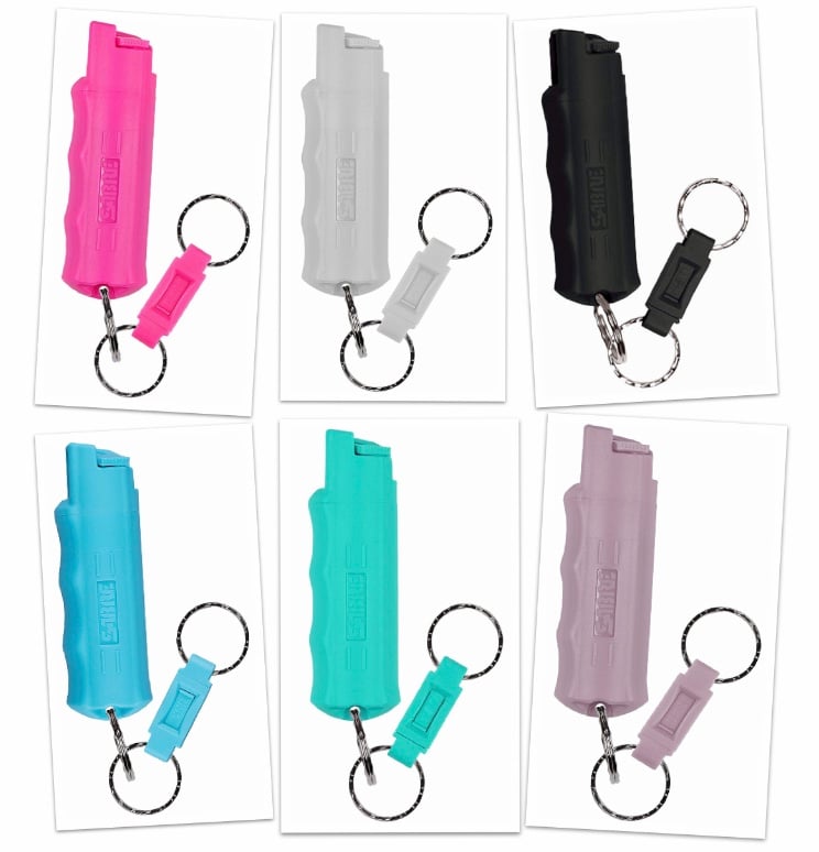 This compact and easy to carry pepper spray combines maximum strength Red Pepper and UV Marking Dye to help ID suspect. Its ergonomic finger grip design allows for better aim and faster deployment. This spray has a powerful stream that projects 10 ft and also provides 25 bursts for protection against multiple enemies. It includes a quick release key ring, which allows it to be separated from your keys, and gives you immediate access to spray in dangerous situations. It also has a reinforced twist lock to secure the trigger.
